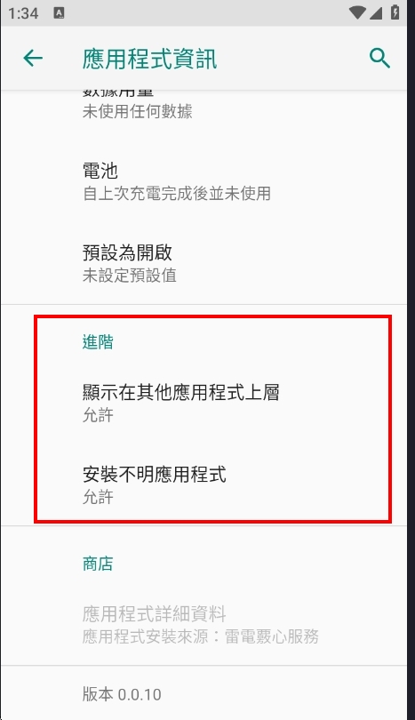 開啟「允許顯示在其他應用程式上層」,將進階功能權限都允許。