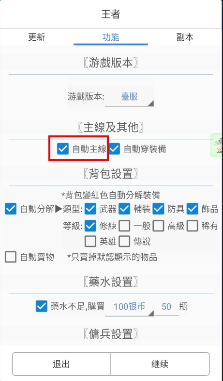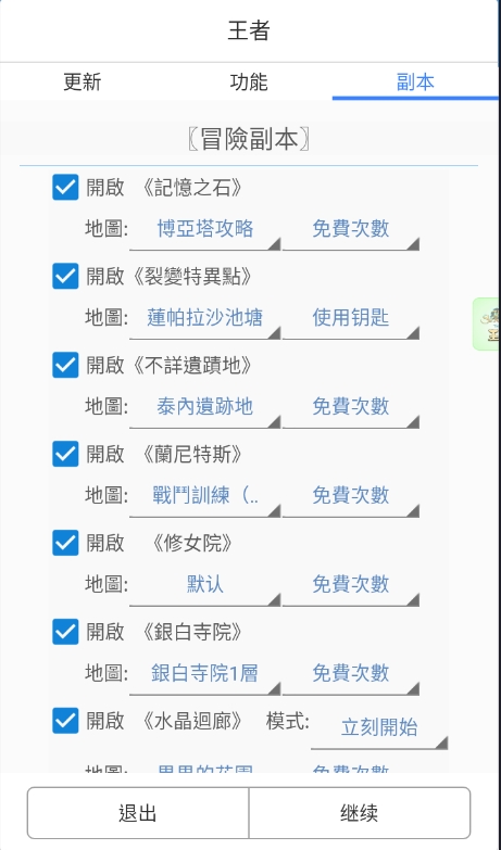 取消勾選「自動主線任務」!在副本介面勾選需要的副本,選擇地圖,選擇免費次數或使用鑰匙,點擊繼續。