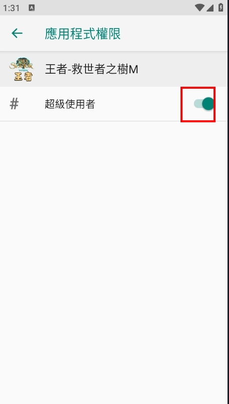 開啟權限給王者輔助,並點擊其他權限,將超級使用者權限開啟